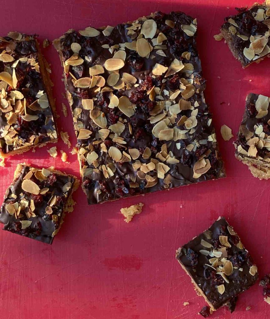 We hebben Annabels verslavende ‘crack’ recept een Halloween twist gegeven. We sprenkelen er gehakte cranberry’s, getoast amandelschaafsel en een snufje grof zout overheen. Devilishy delicious! We leveren dit als een hele plak zodat je het zelf thuis in stukjes kunt breken. Het zou in principe een aantal dagen goed houdbaar zijn…maar eerlijk gezegd is het zo lekker dat het niet de kans zal krijgen.