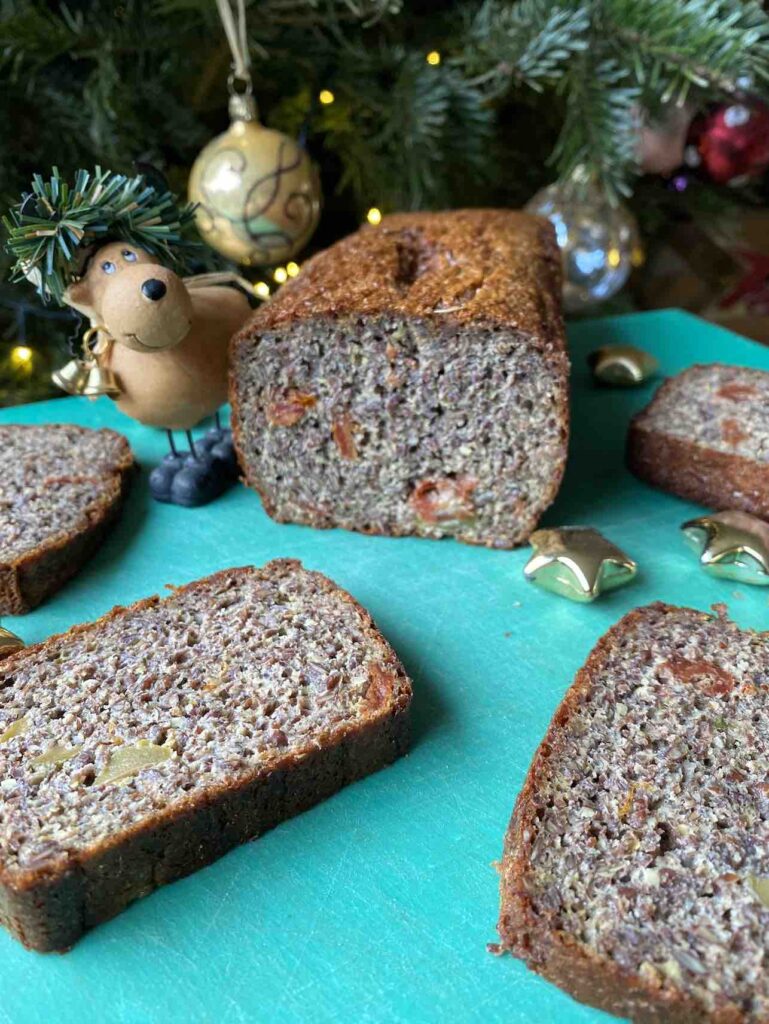Enige tijd geleden hadden we dit brood op het menu als onderdeel van de Dag van de Merlot. Eigenlijk was dit brood ons jaarlijkse kerstbrood – totdat het Deens roggebrood een echte favoriet werd.