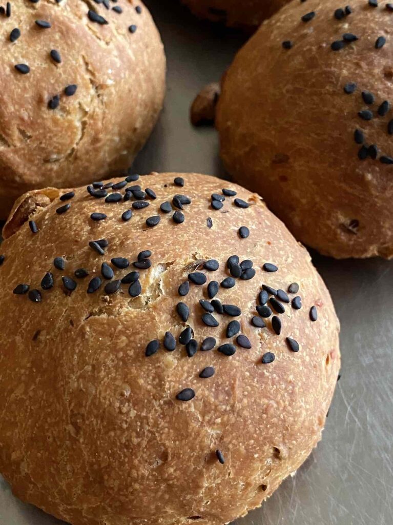 Laat je vooroordelen je niet misleiden dat dit brood té apart is: het gaat eigenlijk bijzonder goed met veel soorten beleg zoals kaas, roomkaas, roerei, gebakken eitjes, opgebakken champignons, chorizo (echt een aanrader!) en zelfs pindakaas (voor nog meer pinda’s en meer crunch). Voor de laveloze, losbandige schavuiten onder jullie zou dan zelfs Nutella kunnen….Beter misschien om je wilde avontuurlijk trekken uit te leven met dit brood dan de ruime sop te kiezen.