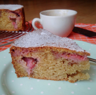 De taart besprenkelen we met poedersuiker en/of misschien amandelschaafsel. Het hangt van onze bak-bui af, haha. Tjakka!