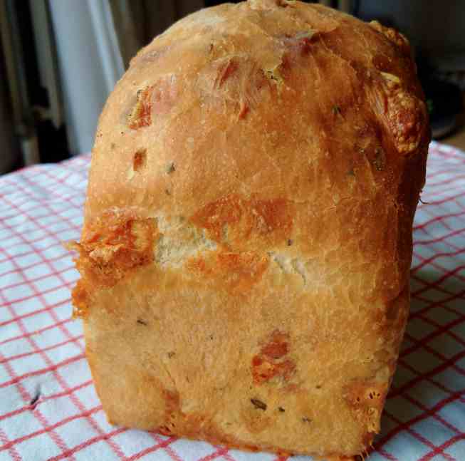 Dit gistbrood zit vol blokjes Gouda belegen Hollandse kaas. En wanneer we schrijven ‘vol blokjes kaas’, dan is dat ook precies wat we bedoelen: er zit echt veel kaas in. We hebben er ook nog wat kruiden aan toegevoegd. Dat geeft wat aantrekkelijke groene spikkels die goed afsteken in die zee van gele tinten van (gedeeltelijk gesmolten) kaasblokjes.