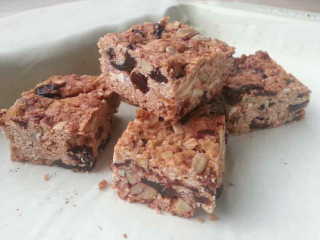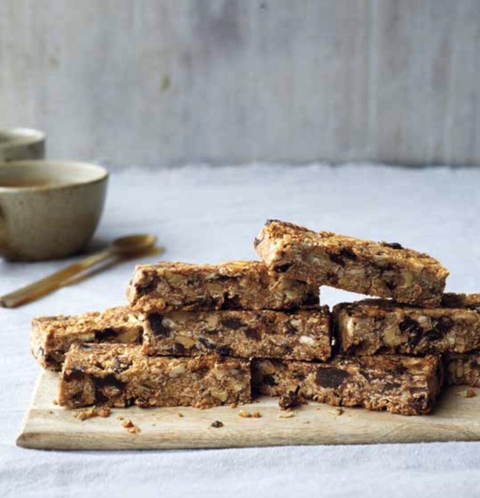 Deze vrijvanalles en toch verrukkelijke blokjes zijn vol gezonde én lekkere dingen: een heerlijk voedend mengsel van haver, dadels, bananen chips, walnoten, sultana’s en zonnebloempitten, gebonden met de hyper trendy kokosolie en een beetje honing. Deze flapjacks geven juist die bezige pakjesbijen vleugels – en toch zijn ze geen Red Bull (sorry mister Verstappen). Maar er zit namelijk geen enkele ‘rotzooi’ in. Het resultaat is een krokant feel good en doet-je-goed verwennerij.