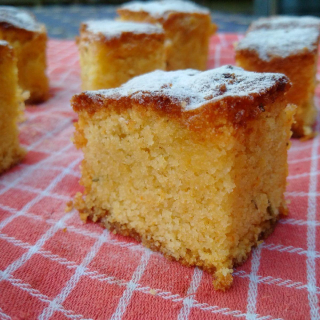 Daarin heeft hij volkomen gelijk. Met een sappig en boterig mengsel van fijn gemalen amandelen, crunchy maismeel en sinaasappel, is het om je vingers bij af te likken. Van het fleurige aroma van het sinaasappelbloesemwater voel je je gelukkig. Het blijft ook nog eens dagenlang goed. Dat betekent dat je er best tot eind van dit weekend van kunt genieten. Gefelici-taart Sint!