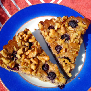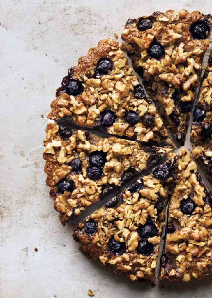 De taart kwam beeldschoon uit de oven en rook voortreffelijk. Sappige bosbessen in een beslag van gemalen walnoten, ricotta en een kietel gemberpoeder. We serveerden het met veel trots en vertelden natuurlijk eerlijk dat het een testje was – en dat we feedback zouden verwelkomen.