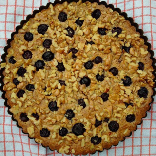 We hadden al een recept gevonden van een restaurant/delicatesse-tent in Londen voor een chocolade hazelnoot ricottataart. Jullie weten ondertussen wel een beetje hoe Jayne in elkaar zit…’Als ik dat zou vervangen door dat dan….’. Dus de hazelnoten (erg duur op dat moment) vlogen de deur (ehm.. het recept) uit en walnoten kwamen in hun plaats. De chocolade (‘Mmm, lekker, maar te machtig voor het warme weer’) werden vervangen door bosbessen. ‘Als ik dat schepje bloem vervang door rijstemeel dat wordt het ineens volledig glutenvrij.’
