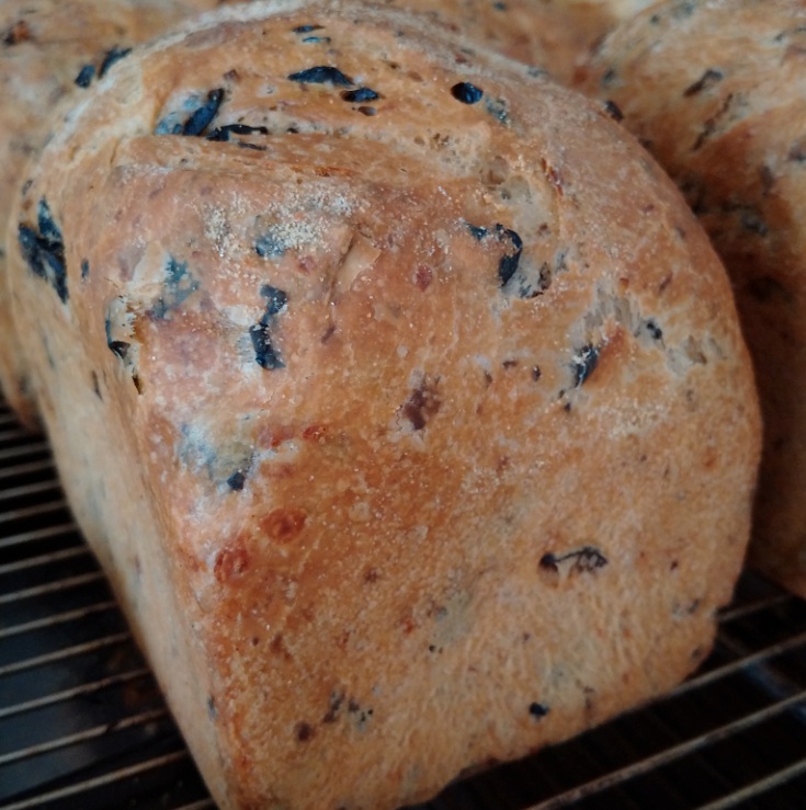 Dit brood kun je zo opeten – au naturel – maar het is ook verrukkelijk wanneer je het in goede olijfolie dipt. En dat hoeft trouwens geen Griekse olijfolie te zijn hoor, haha. Nog meer ideeën om mee uit te pakken/beleggen zijn met bijvoorbeeld een gebakken eitje met vers gemalen zwarte peper, of plakjes rijpe avocado, of met een dikke laag hummus of pâté. Oh ja, en natuurlijk met zachte roomboter! En voor diegenen die scherp zijn, zie je dat er zwarte olijven zijn in de foto…maar deze week doen wij er groene in.