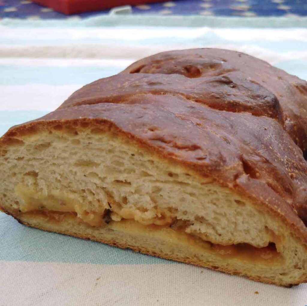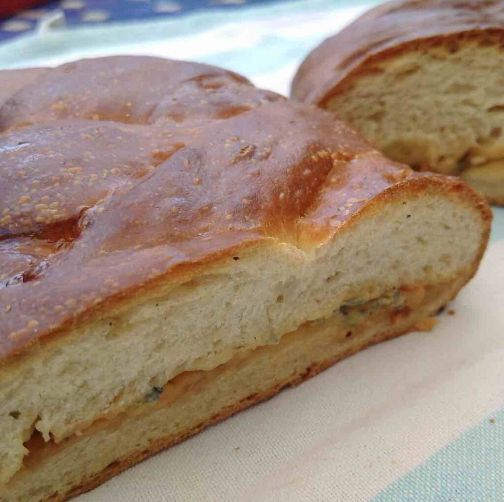 Een brooddeeg gemaakt met ons lievelings gebuilde tarwemeel, en dan om een kaasvulling heen gevlochten. Terwijl het er van de buitenkant uitziet als een simpele vlecht – waarvoor je veel geduld en stalen zenuwen nodig hebt om het te maken – de verrassing zit hem in een aangesneden plak. Dan zie je de verborgen schatten….