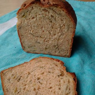 Dit is een licht volkorenbrood dat vol bosui zit samen met een grote handvol gehakte salie.
